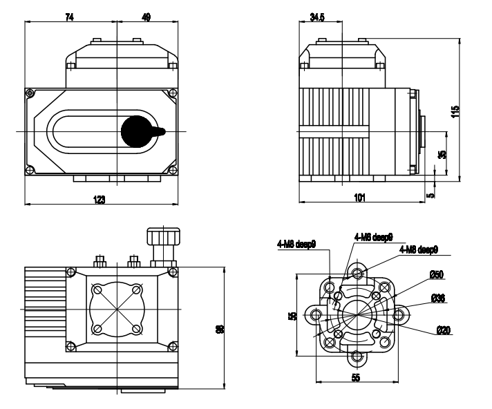 6. Chaves de limite: chaves de limite de posição mecânicas e eletrônicas. Parada mecânica Iscrew pode ser ajustável;Os interruptores de limite eletrônicos podem ser controlados pelo came. A posição pode ser definida com facilidade e precisão simplesmente ajustando o came sem qualquer influência da alça;