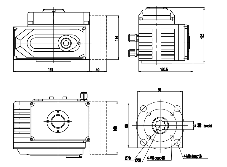 9. Aplicação: a conexão inferior está em conformidade com o padrão ISO5211/DIN3337.O furo quadrado em estrela é fácil para aplicação linear com haste de válvula quadrada ou rotação de 45°;Estão disponíveis montagens verticais e horizontais;