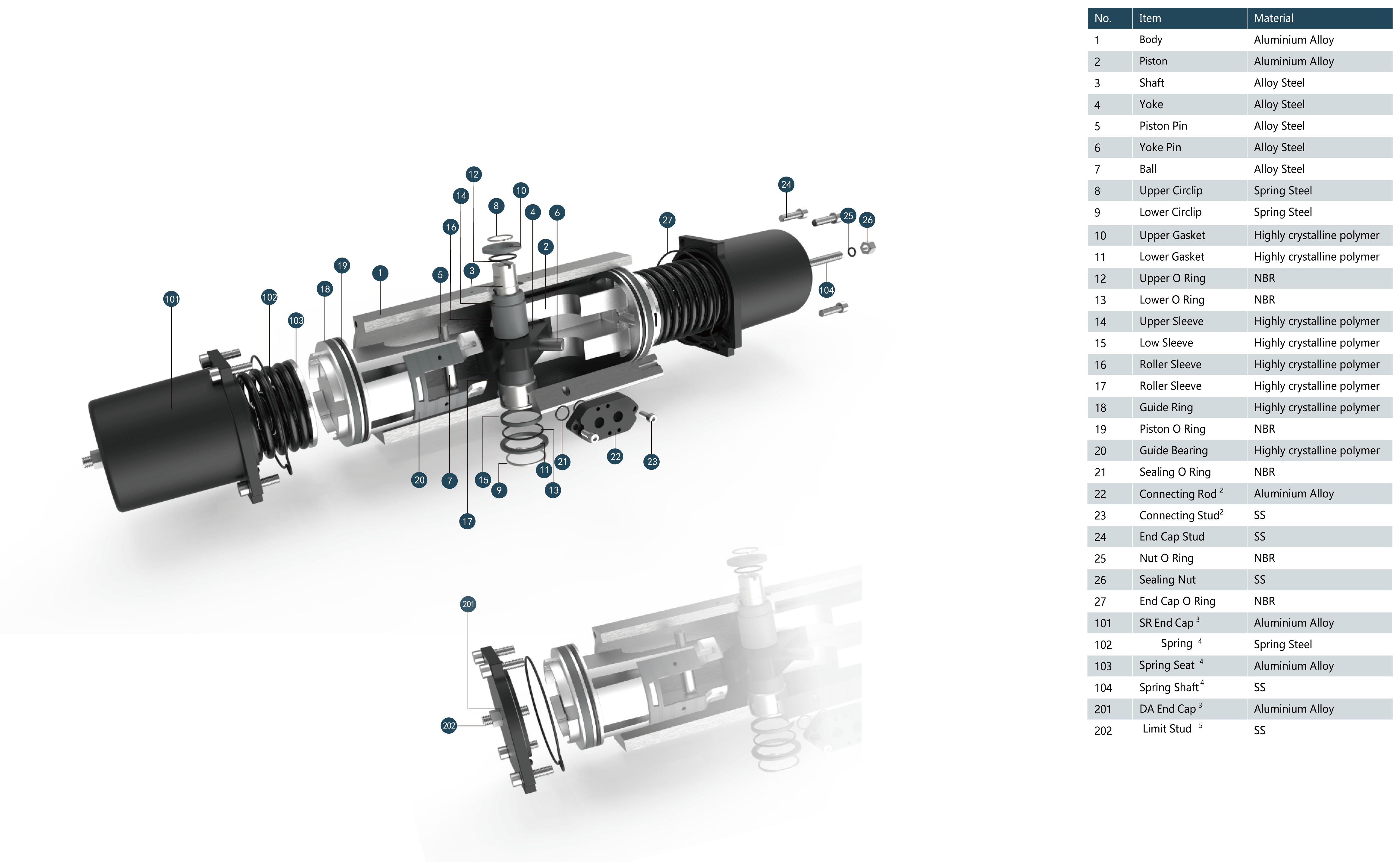 Comparado com o tipo de cremalheira e pinhão, o consumo de ar é reduzido - (40%cm3/Nm), e a compressão é reduzida, e um compressor de tamanho menor pode ser selecionado
